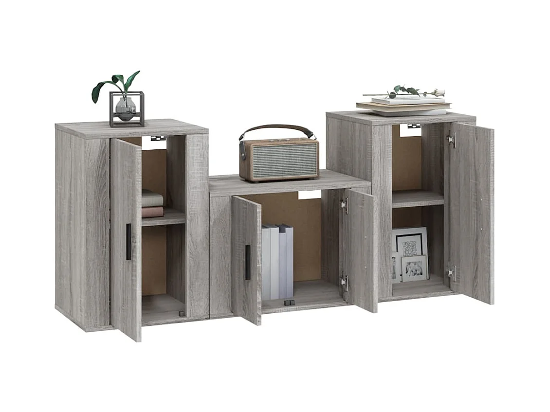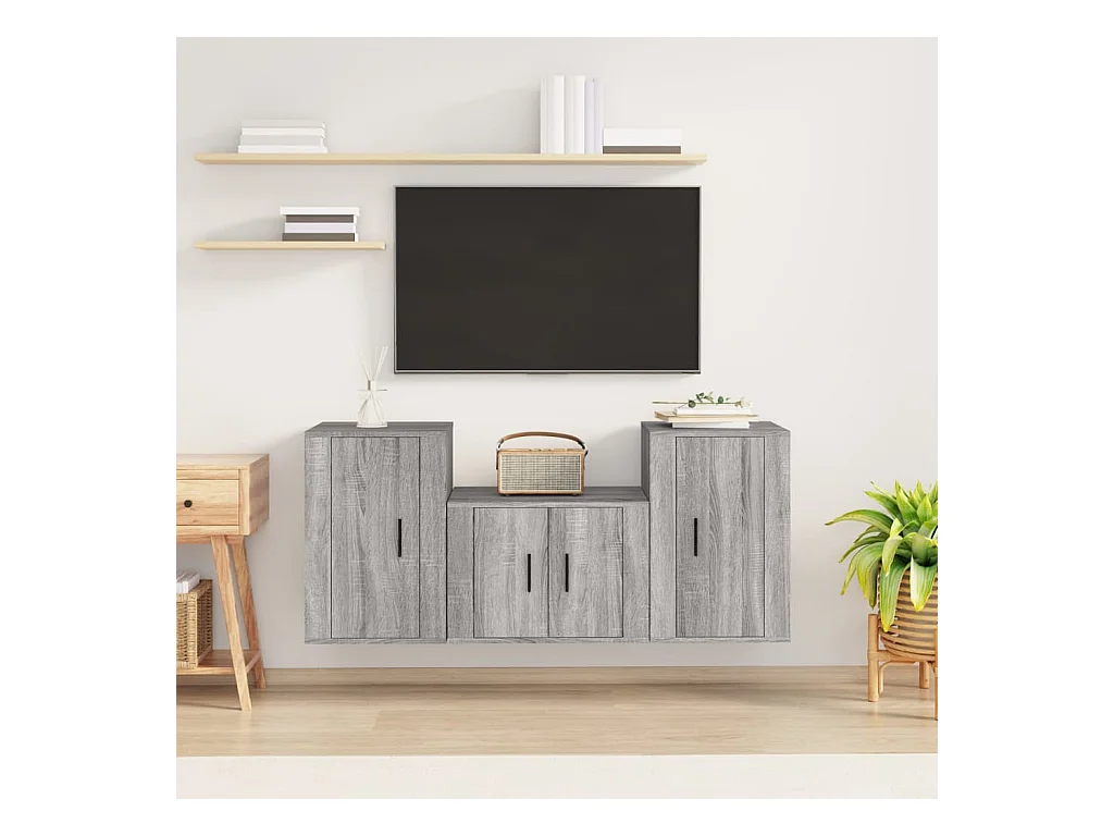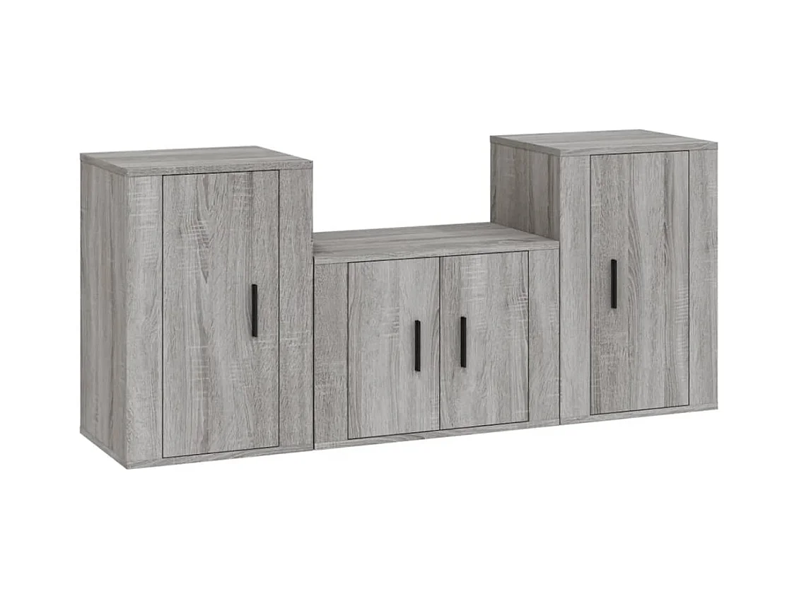 Set de muebles para TV | Gabinetes de TV | Muebles de salón 3 pzas madera contrachapada gris Sonoma