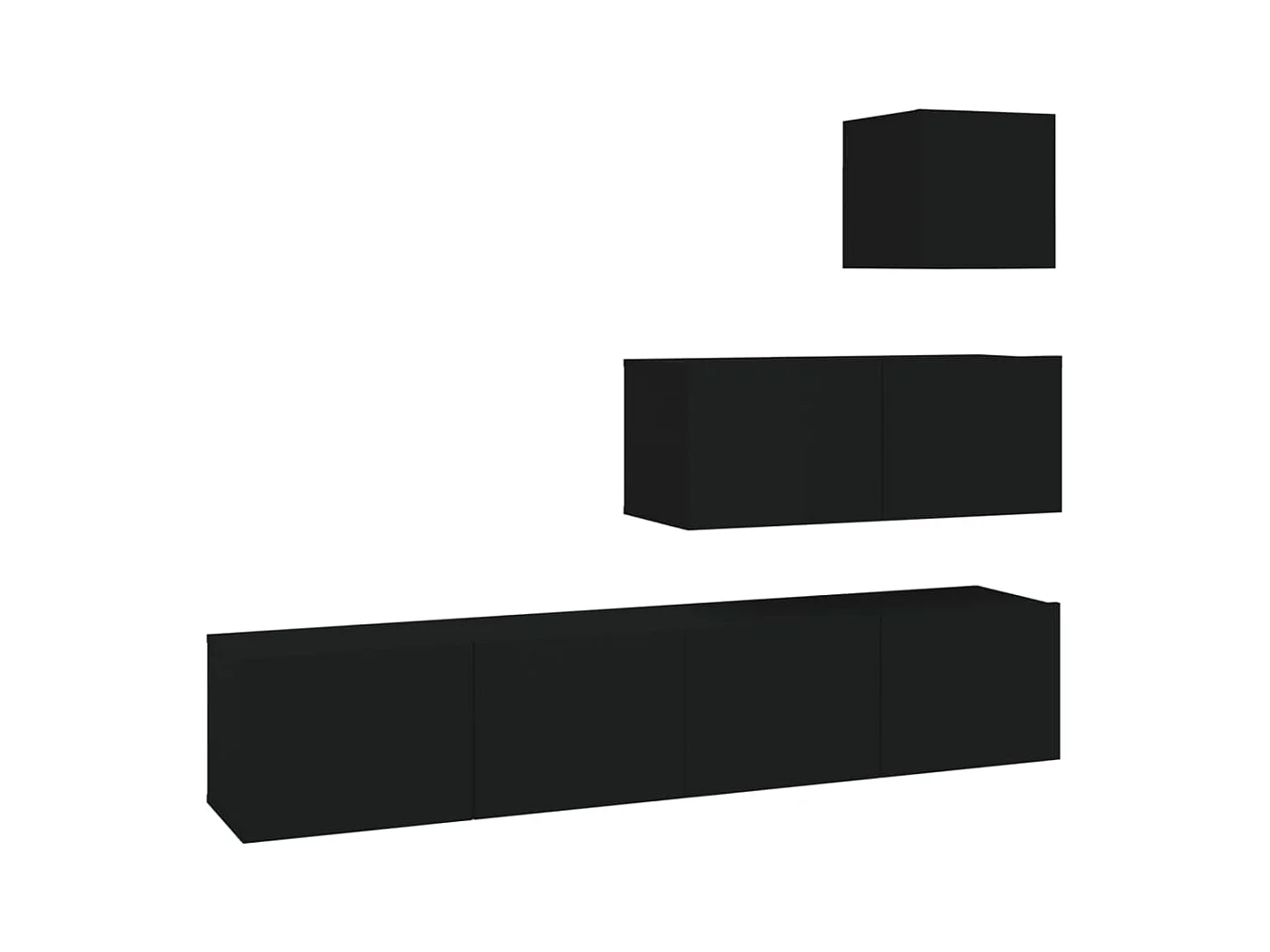 Set de muebles para TV | Gabinetes de TV | Muebles de salón 4 piezas madera contrachapada negro