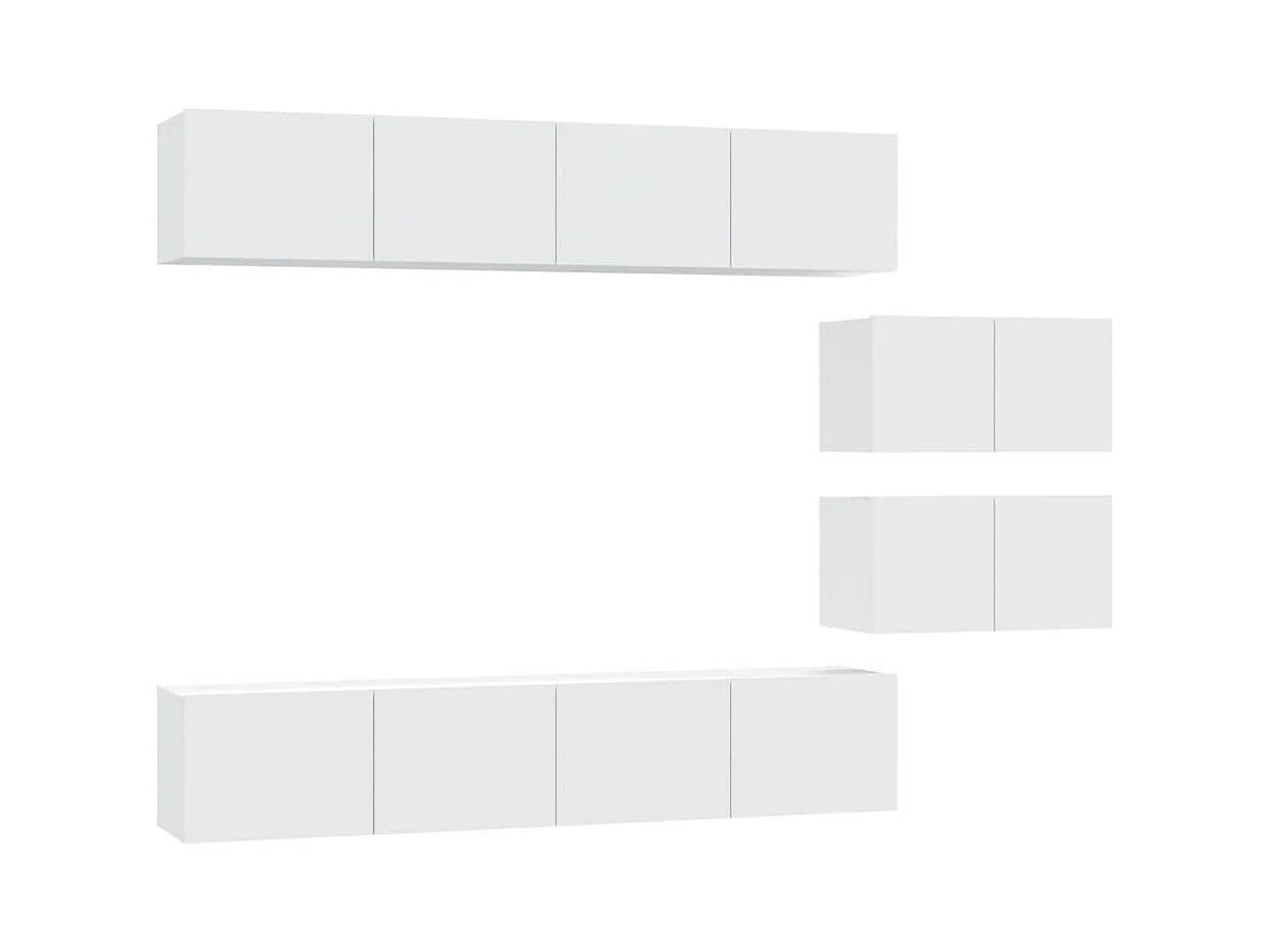 Set de Mueble para TV | Gabinete de TV | Mueble de salón de 8 piezas madera contrachapada blanco