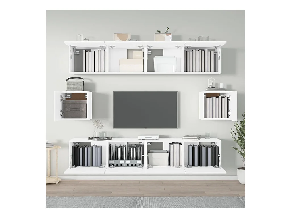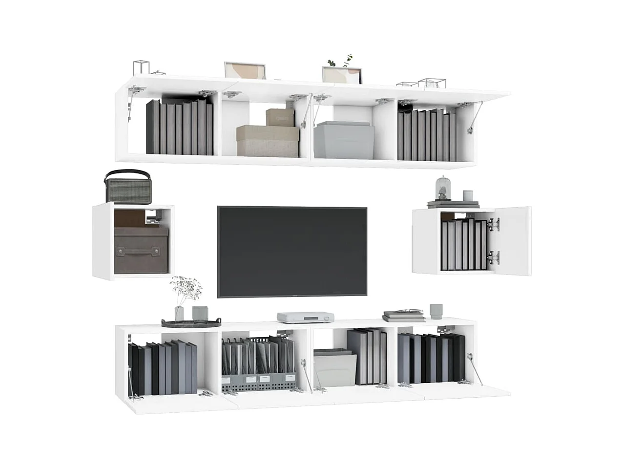 Set de muebles de salón TV | Gabinetes de TV | Muebles de TV 7 piezas madera de ingeniería blanco