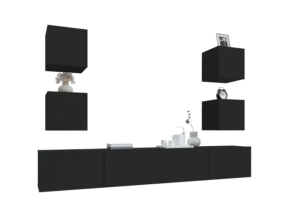 Set de muebles para TV | Gabinetes de TV | Muebles de salón 6 piezas madera contrachapada negro