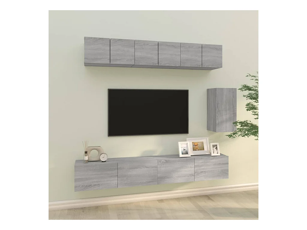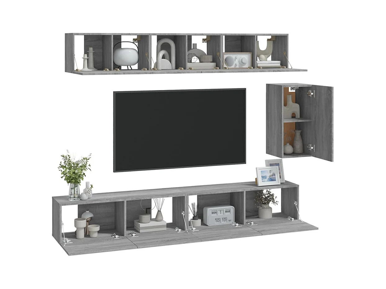 Set de muebles para TV | Gabinetes de TV | Muebles de salón 6 pzas madera contrachapada gris Sonoma