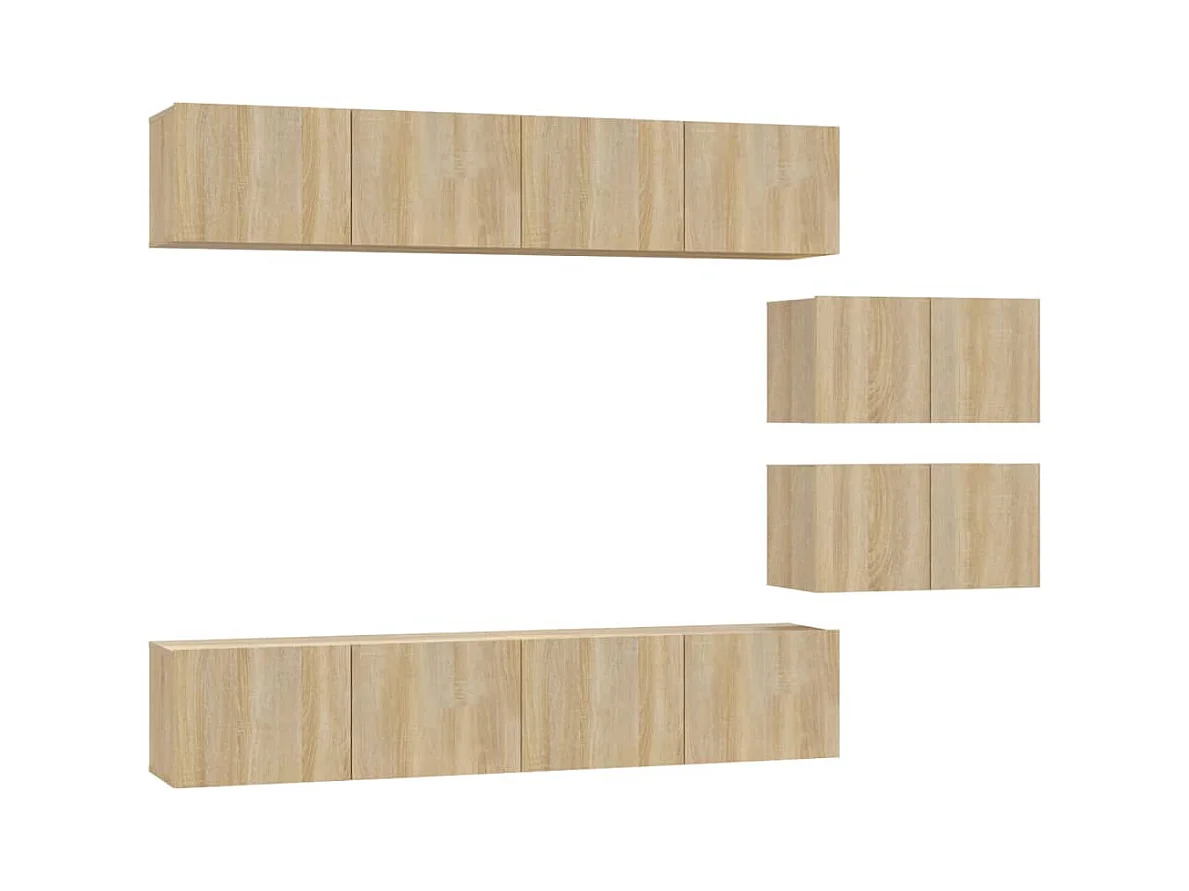Muebles de pared de TV | Gabinetes de TV | Muebles de salón 7 pzas aglomerado color roble Sonoma
