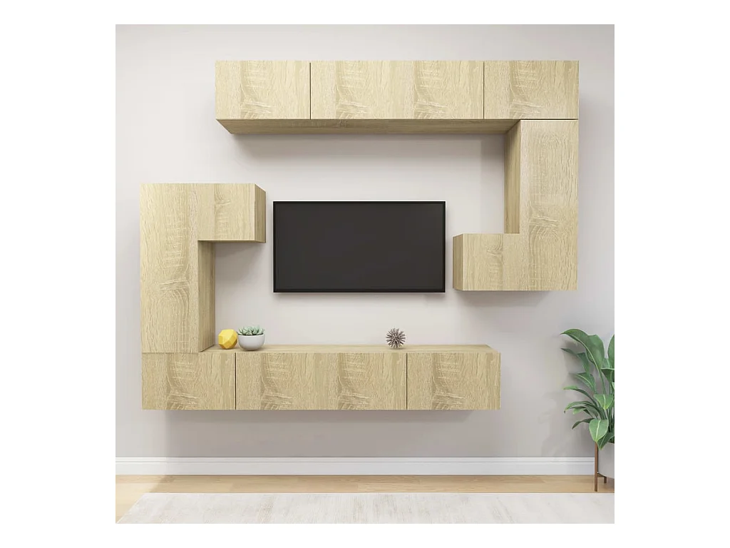 Juego de muebles de salón | Gabinetes de TV | Muebles de TV 7 piezas roble Sonoma