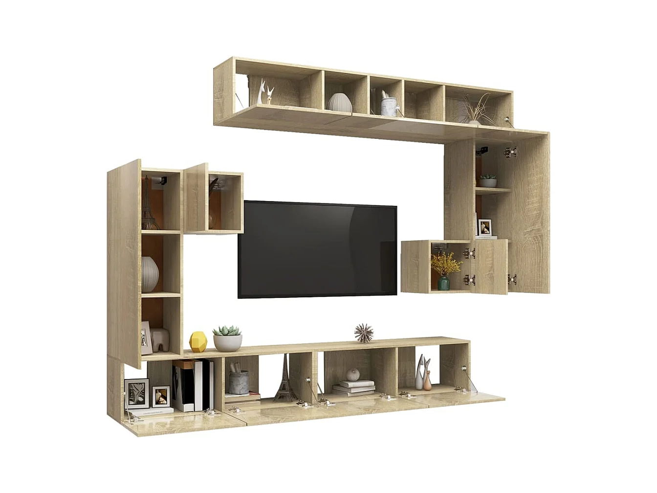 Set de muebles para TV | Gabinetes de TV | Muebles de salón 8 pzas madera contrachapada roble Sonoma