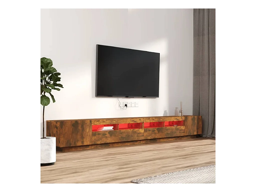 Mueble de TV | Mueble de salón luces LED madera roble artisan 260x35x40 cm