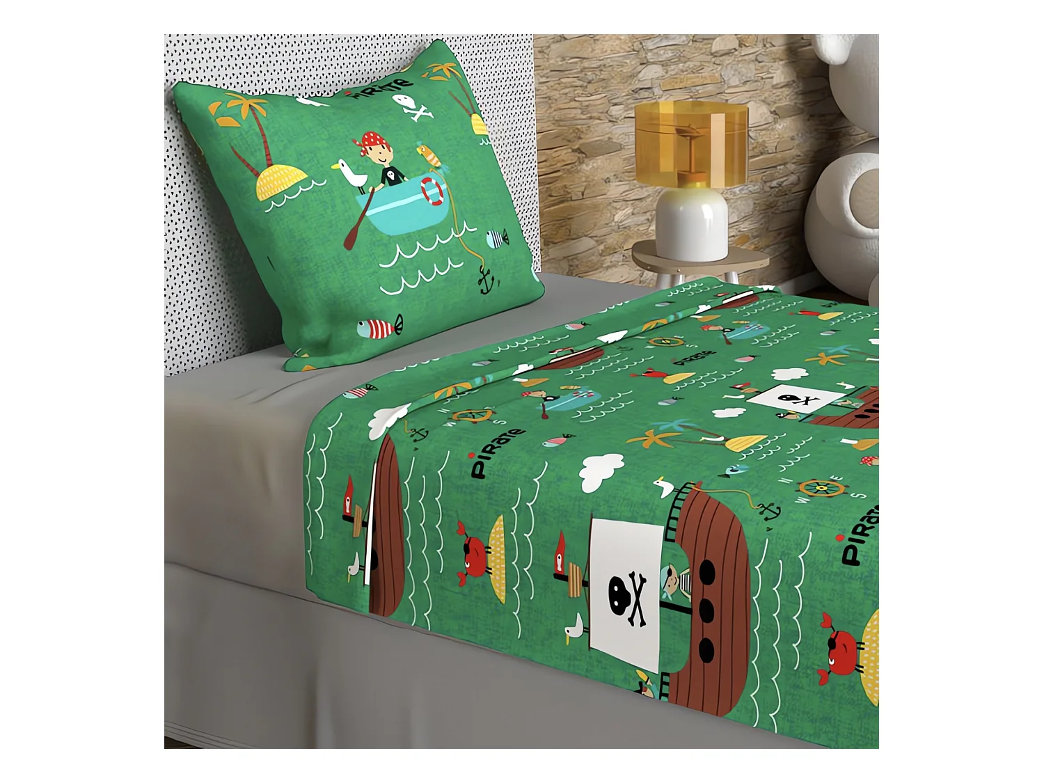 Set de sábanas 180x290 cm Verde piratas, 100% algodón 57 hilos/cm2
