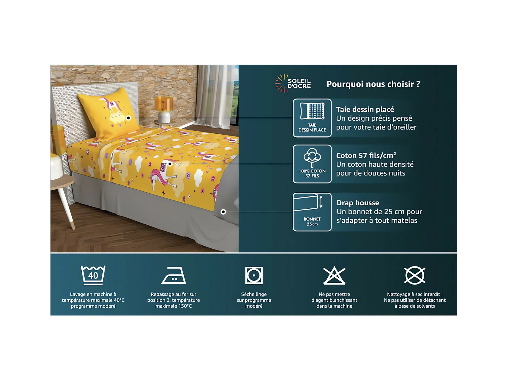 Set funda nórdica de algodón 57 hilos 140x200 cm ESMERALDA green de Ocre Sun