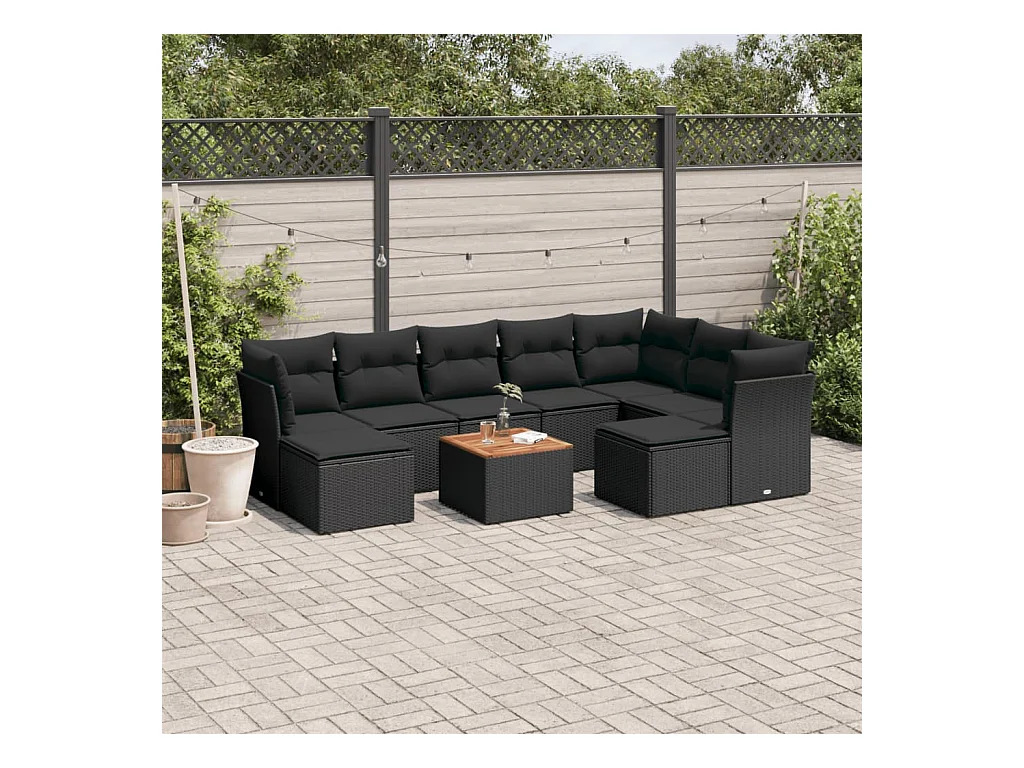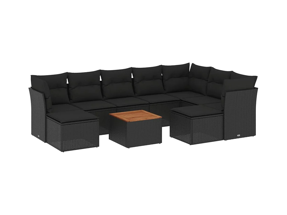 Set de sofás de jardín 10 piezas cojines ratán sintético negro