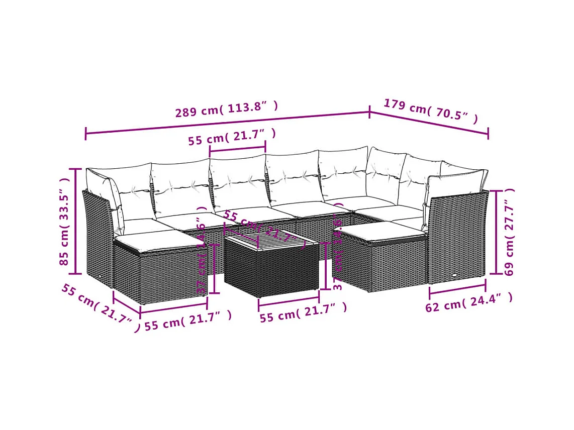 Conjunto de jardín - sofá 2+1+1 plazas
