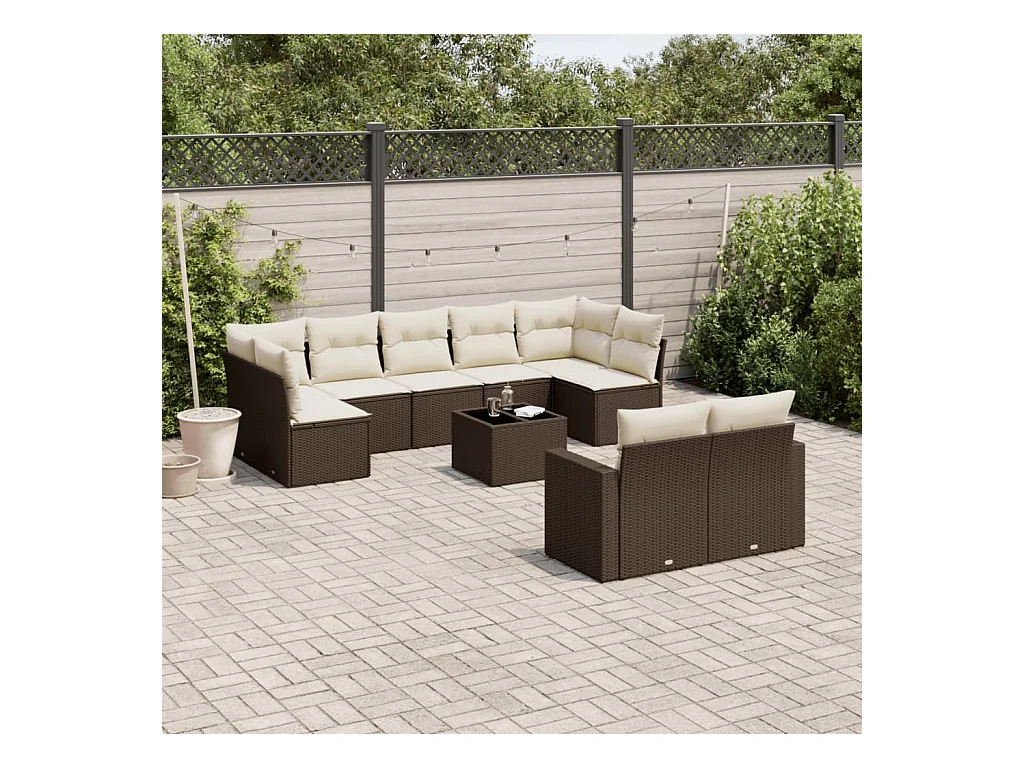 Set de sofás de jardín 10 piezas y cojines ratán sintético marrón