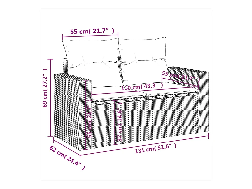 Set de sofás de jardín 9 piezas y cojines ratán sintético marrón