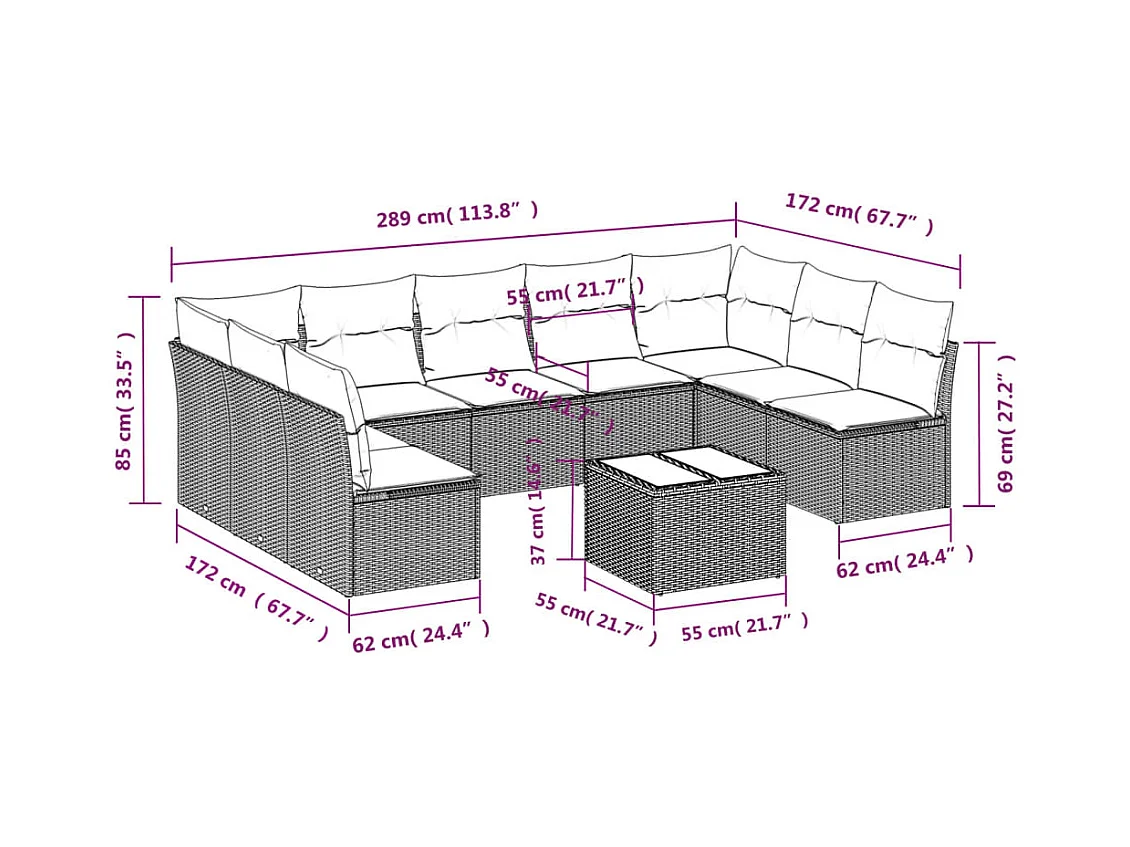 Set de sofás de jardín 10 piezas y cojines ratán sintético marrón