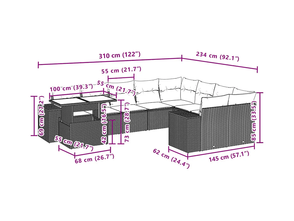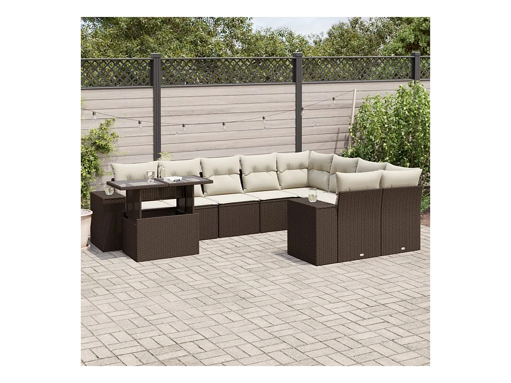 Set de sofás de jardín 10 piezas y cojines ratán sintético marrón