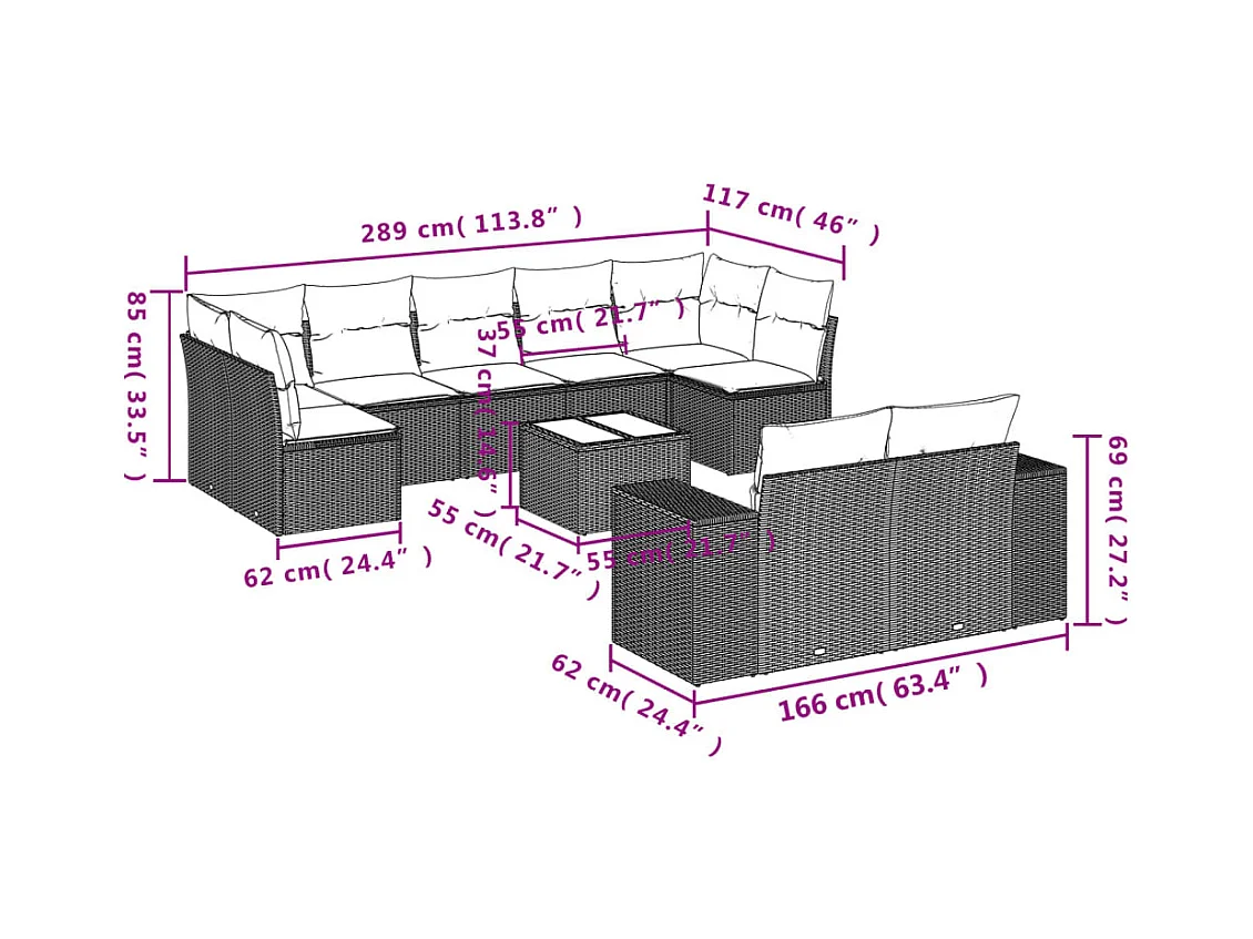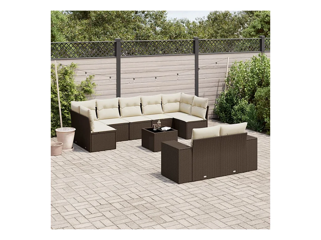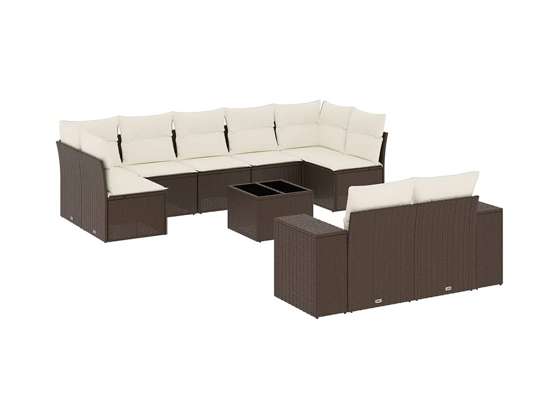 Set de sofás de jardín 10 piezas y cojines ratán sintético marrón