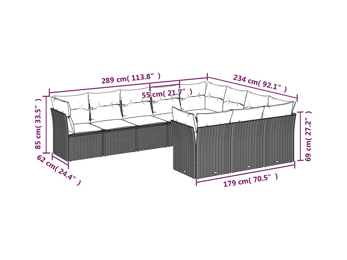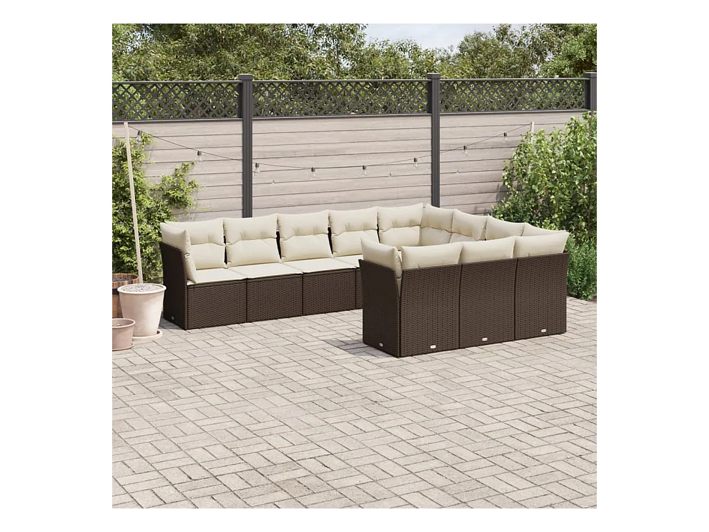 Set de sofás de jardín 10 pzas y cojines ratán sintético marrón
