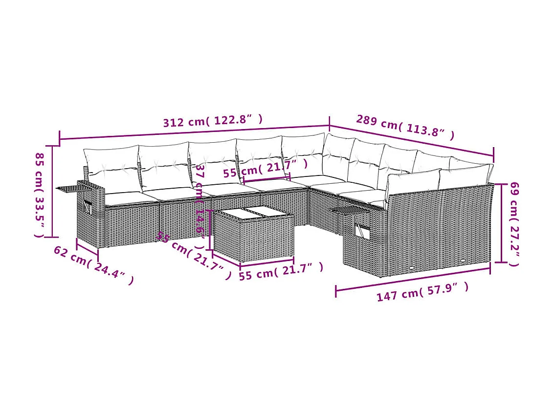 Set de sofás de jardín y cojines 12 piezas ratán sintético marrón