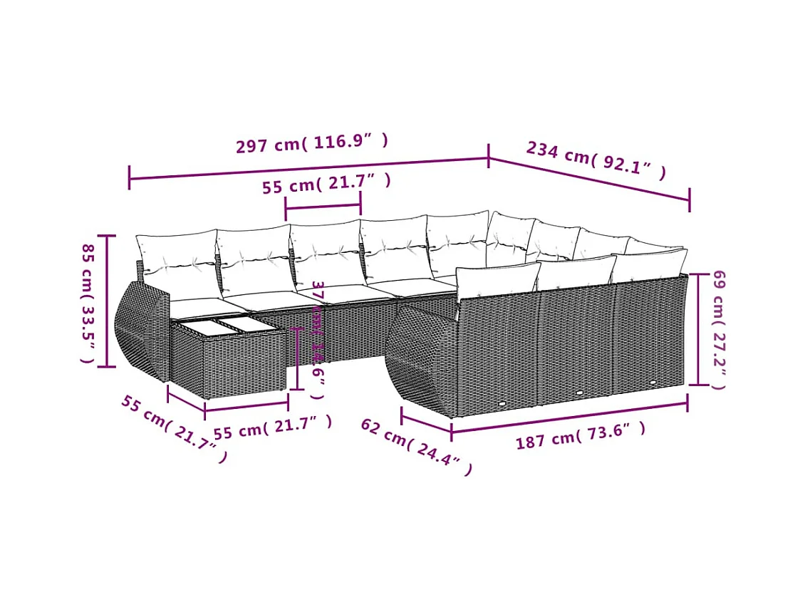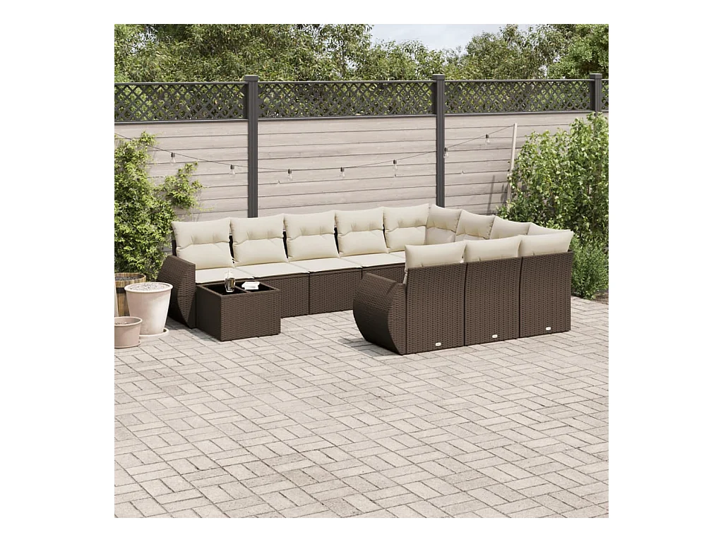 Set de sofás de jardín 11 piezas cojines ratán sintético marrón