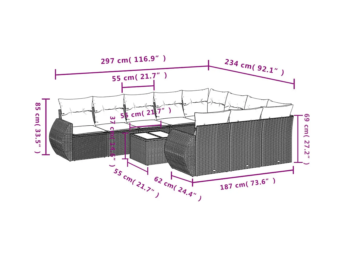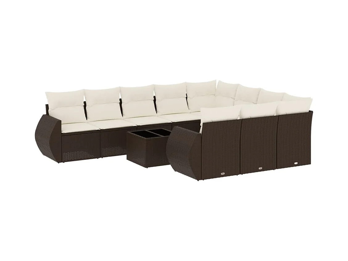 Set de sofás de jardín 11 piezas cojines ratán sintético marrón
