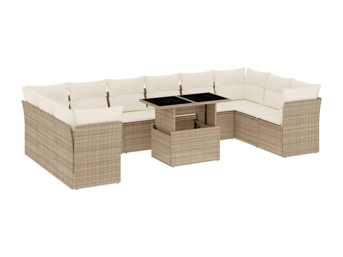 Set de sofás de jardín 11 piezas con cojines ratán sintético beige