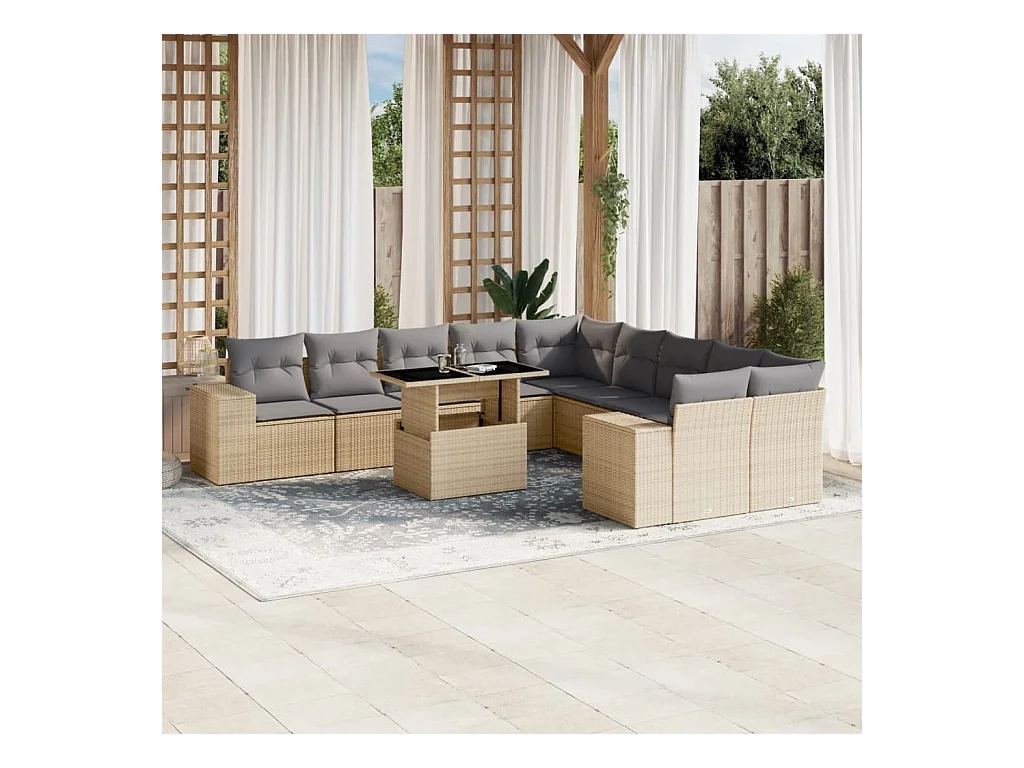 Set de sofás de jardín 11 piezas con cojines ratán sintético beige
