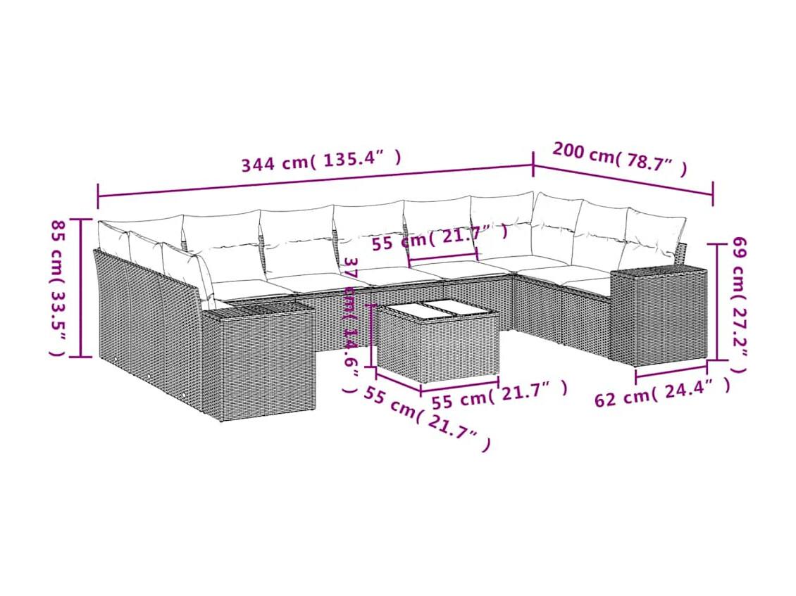 Set de sofás de jardín 11 piezas y cojines ratán sintético gris
