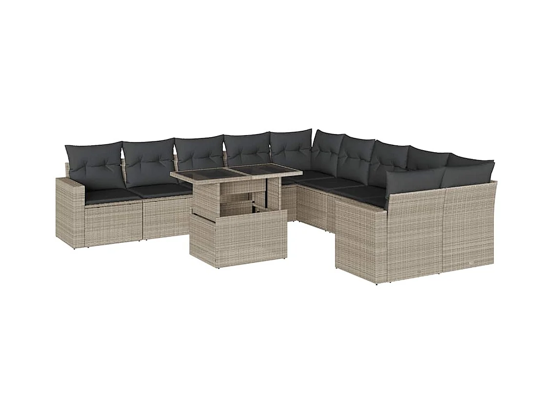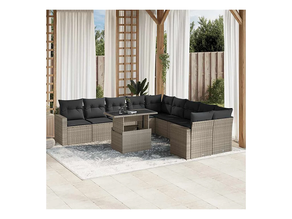 Set de sofás de jardín 11 piezas y cojines ratán sintético gris
