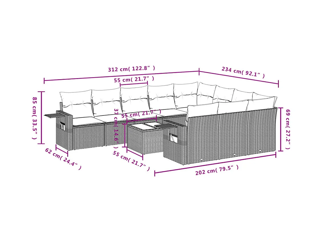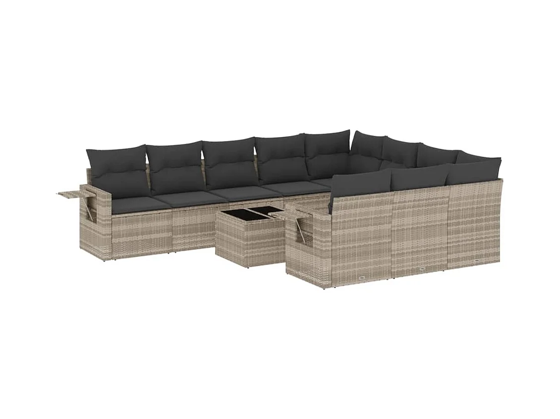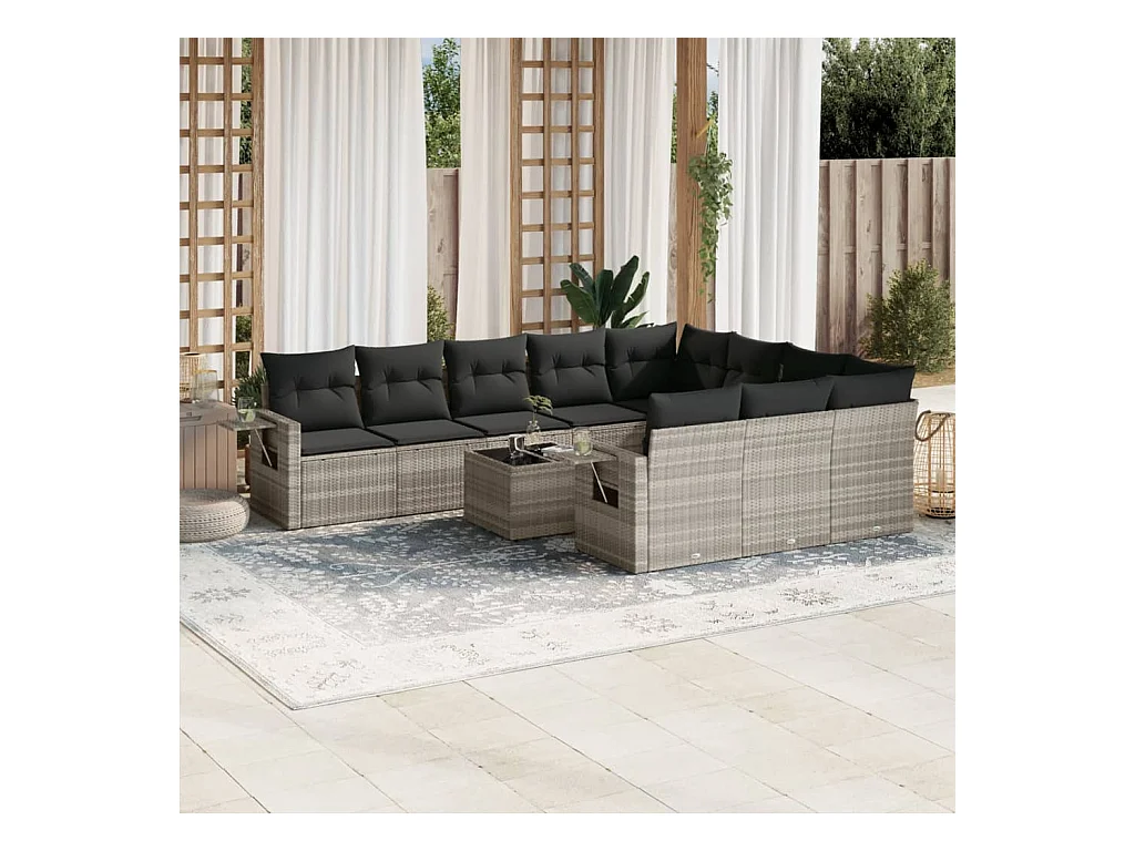 Set de sofás de jardín 11 piezas y cojines ratán sintético gris