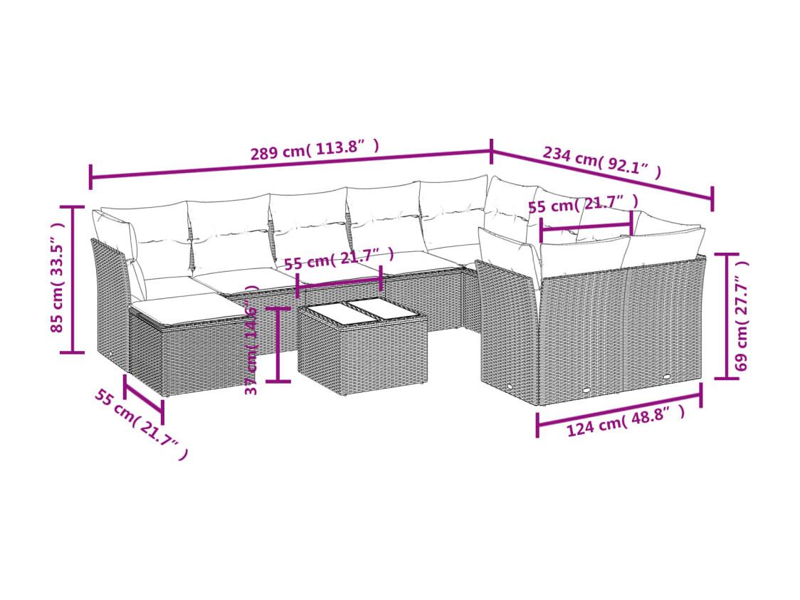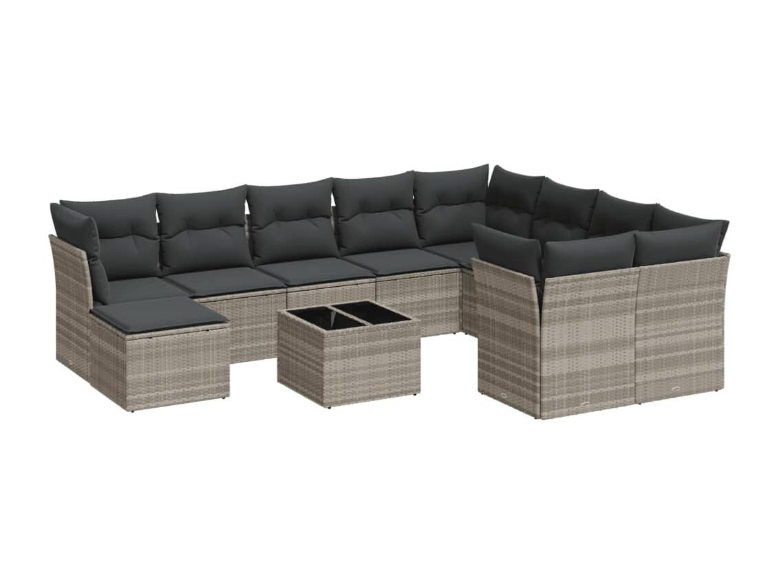 Set de sofás de jardín 11 piezas y cojines ratán sintético gris