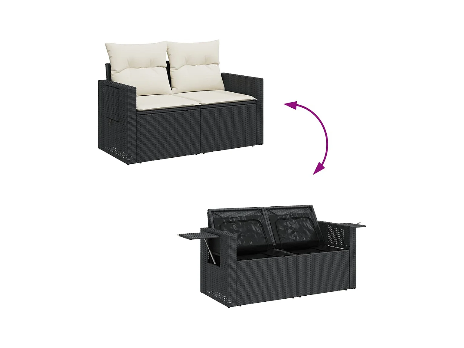 Set de sofás de jardín 11 piezas y cojines ratán sintético negro