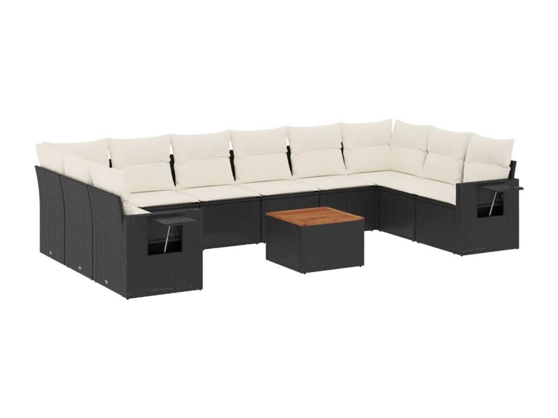 Muebles de jardín de 12 piezas con cojines de resina tejida en negro.