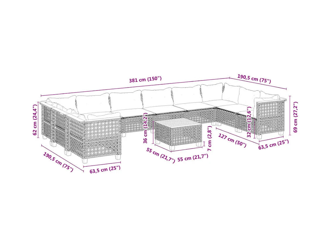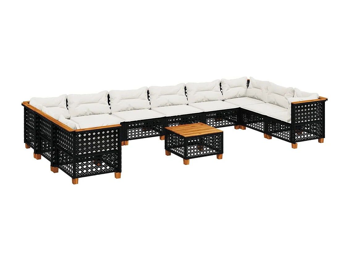 Set de sofás de jardín 11 pzas y cojines ratán sintético negro