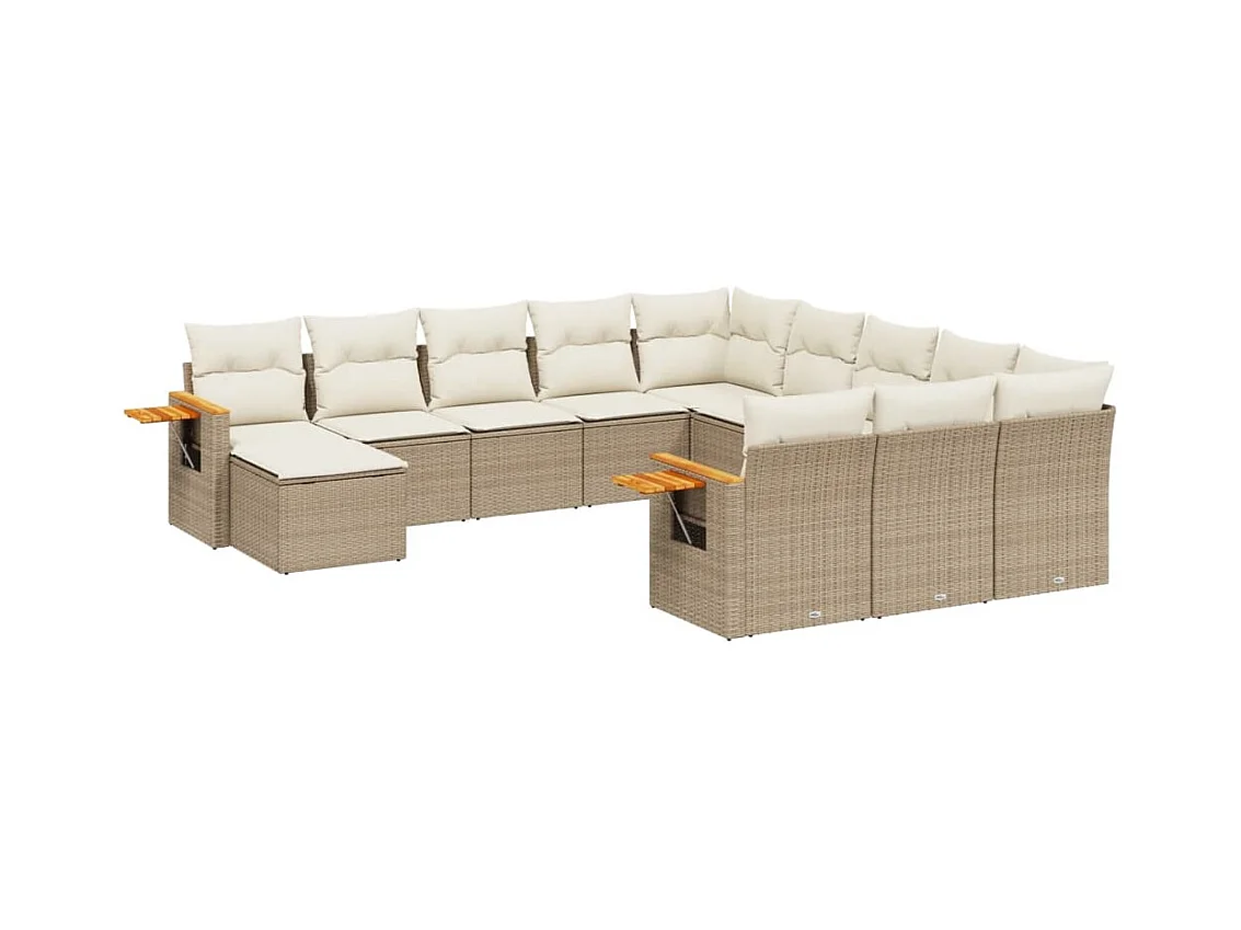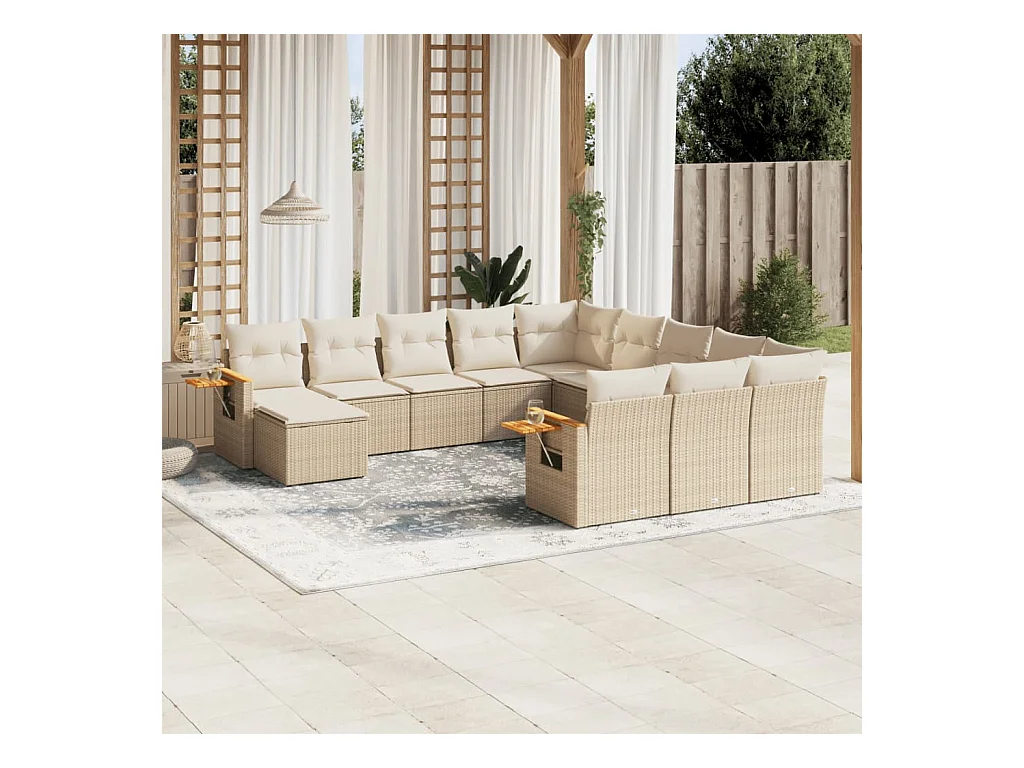 Set de sofás de jardín 11piezas con cojines ratán sintético beige