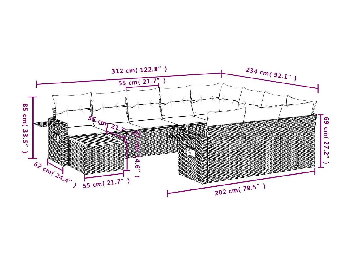 Set de sofás de jardín 11piezas con cojines ratán sintético beige