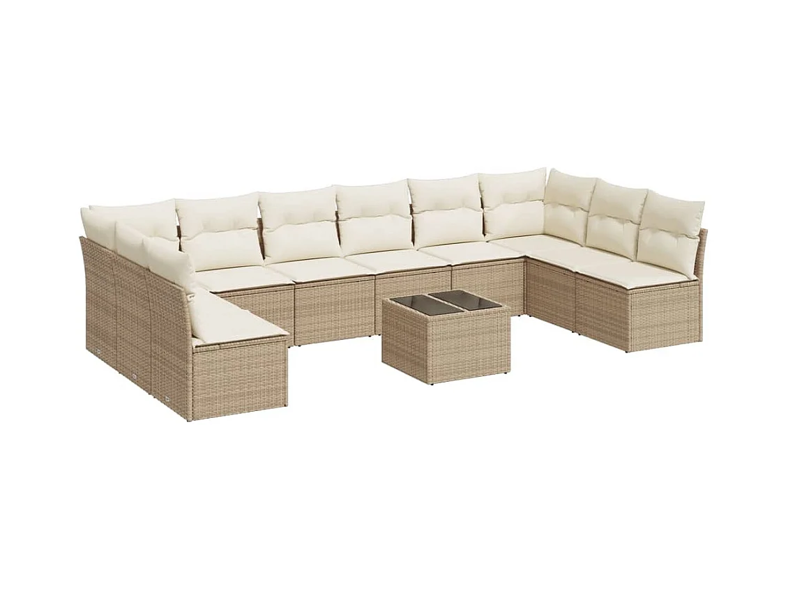 Set de sofás de jardín 11piezas con cojines ratán sintético beige