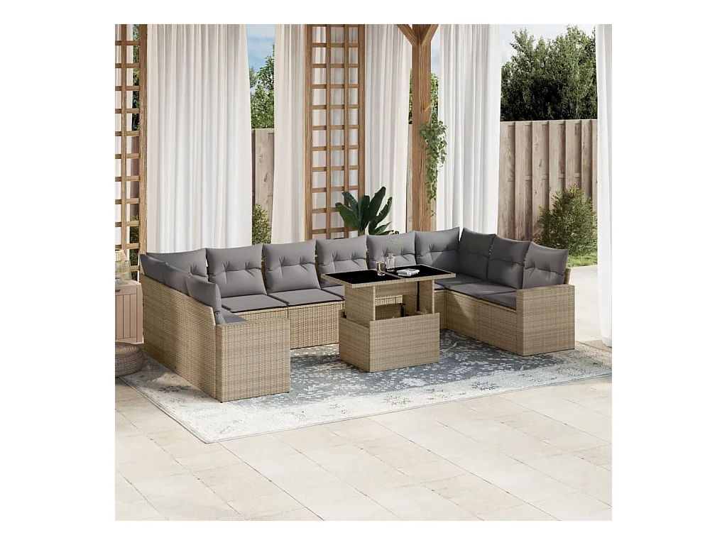 Set de sofás de jardín 11pzas con cojines ratán sintético beige