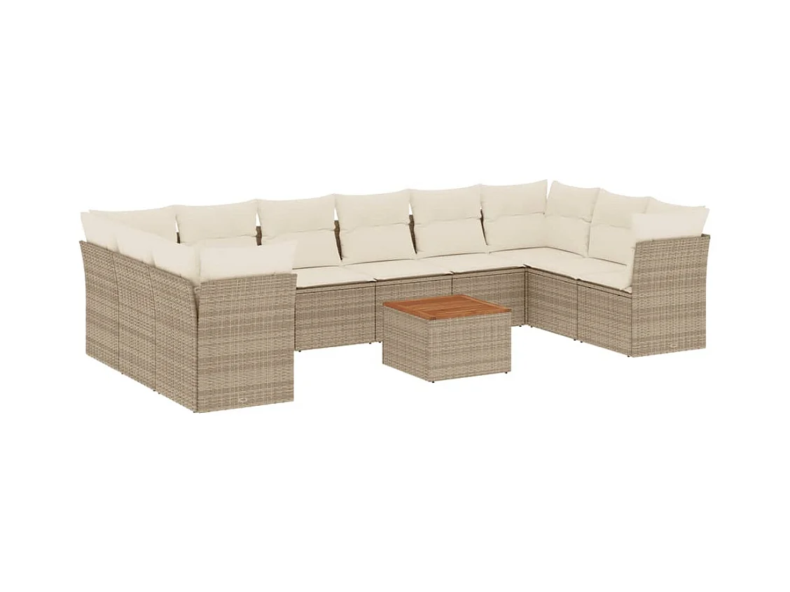 Set de sofás de jardín 11pzas con cojines ratán sintético beige