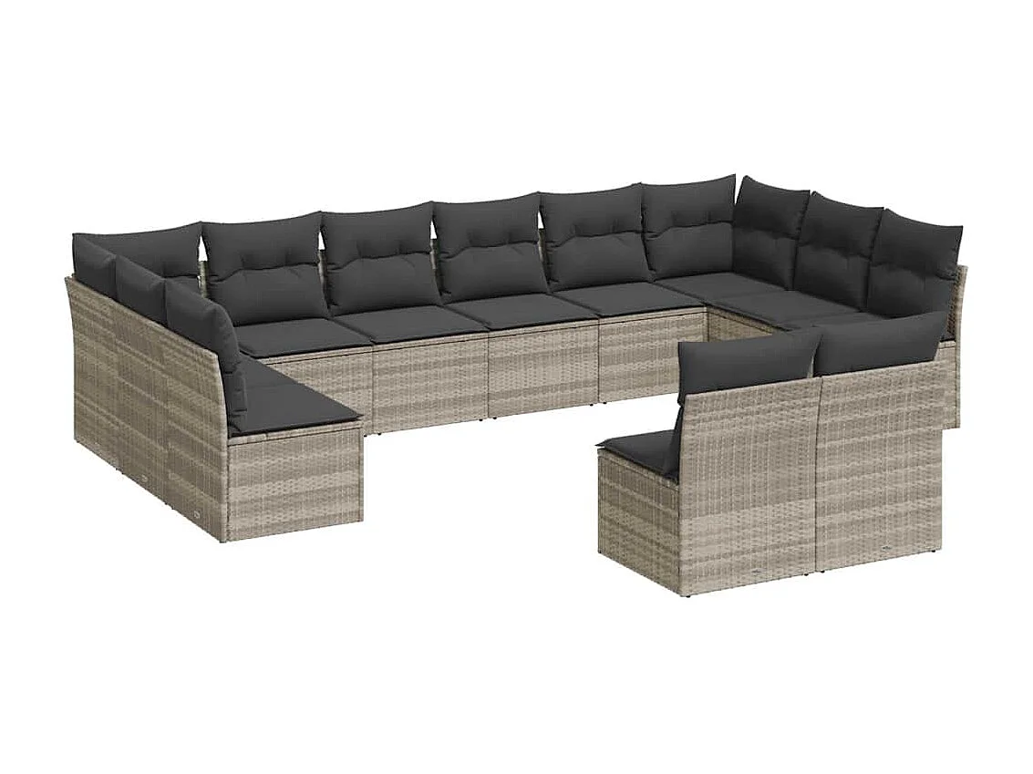 Set sofás de jardín con cojines 13 piezas ratán sintético gris