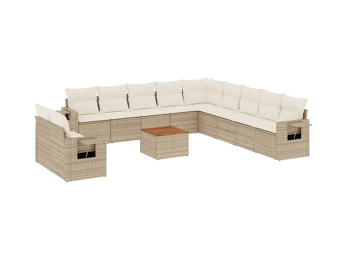 Muebles de jardín con cojines 12 piezas resina tejida beige