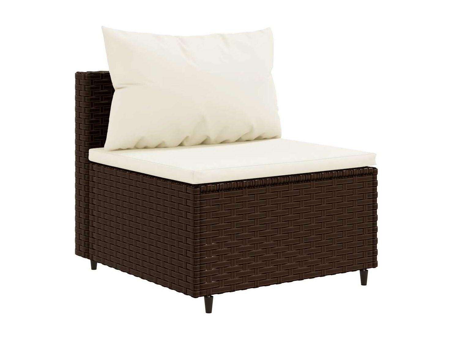 Set de sofás de jardín 4 piezas y cojines ratán sintético marrón