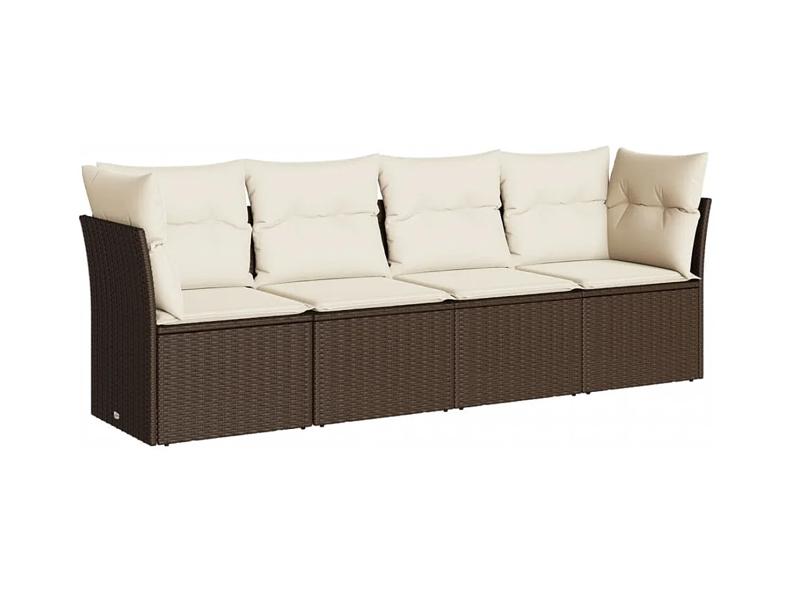 Set de sofás de jardín 4 pzas y cojines ratán sintético marrón