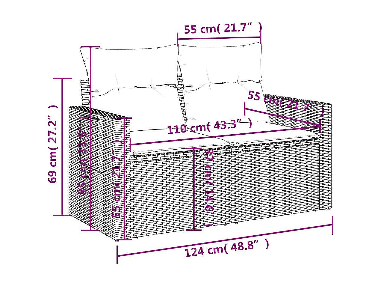 Set de sofás de jardín 7 piezas con cojines ratán PE gris claro