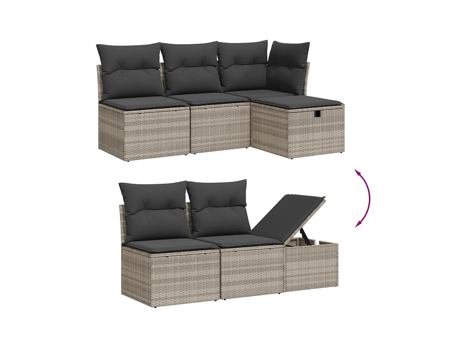 Set de sofás jardín y cojines 5 piezas ratán sintético gris claro