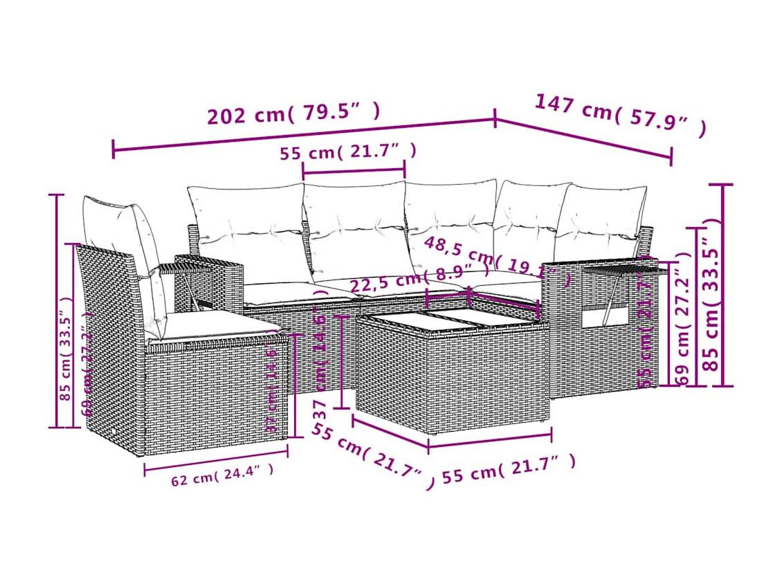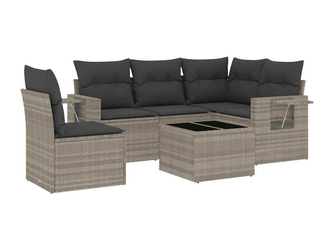 Set de sofás de jardín 6 piezas y cojines ratán sintético gris