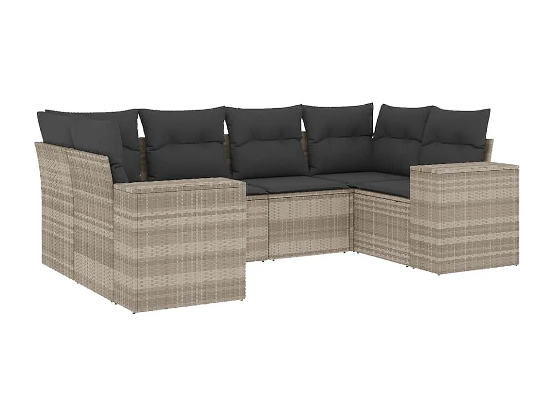 Set de sofás de jardín 6 piezas y cojines ratán sintético gris