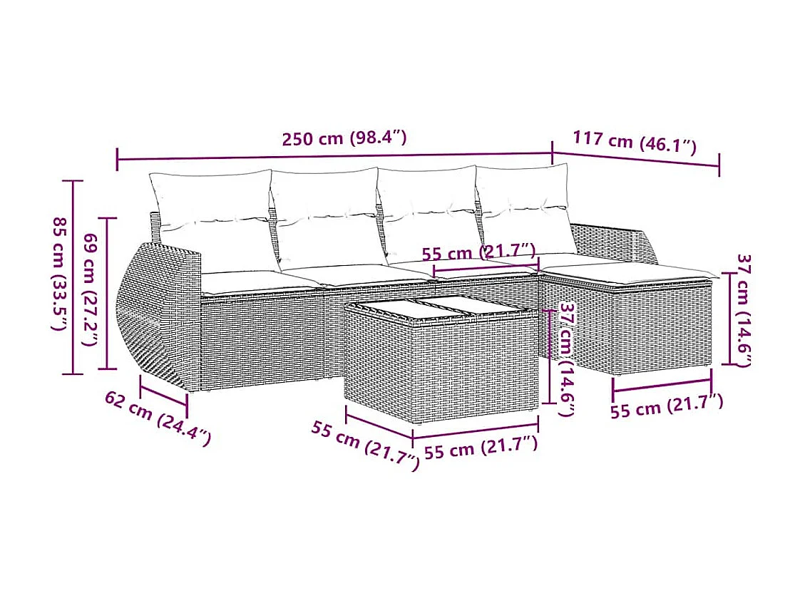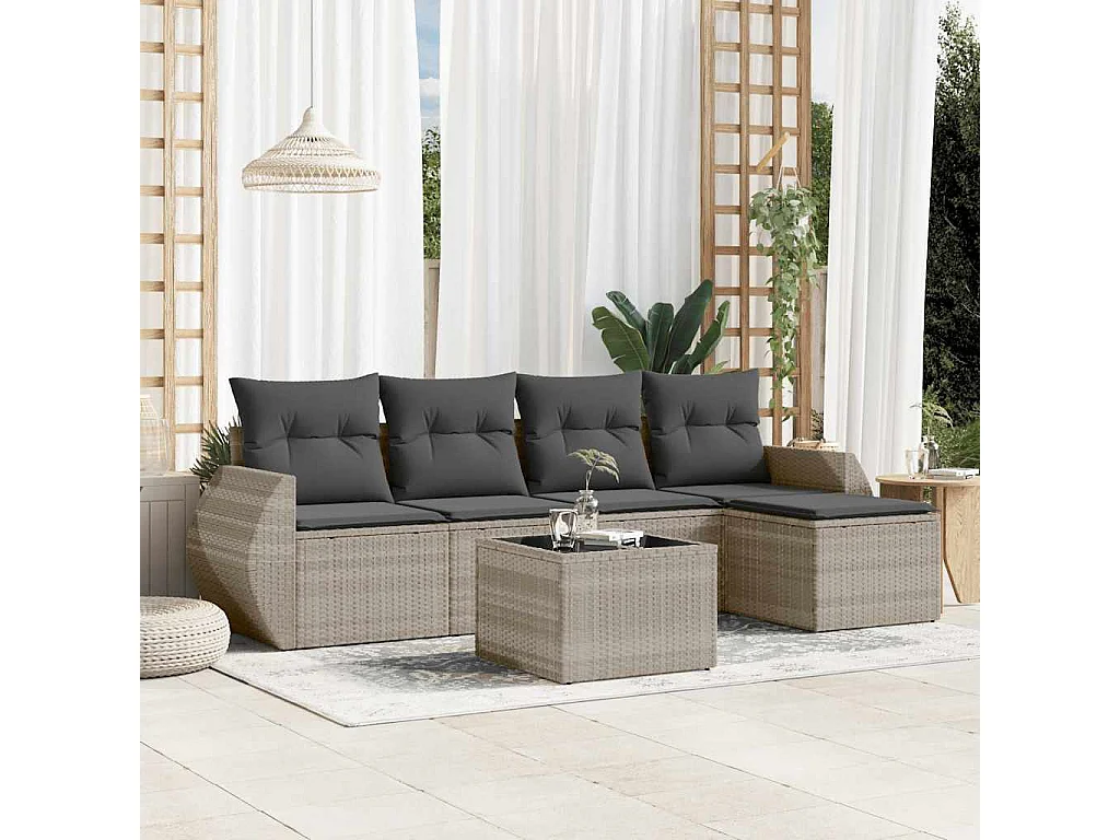 Set de sofás de jardín 6 piezas y cojines ratán sintético gris