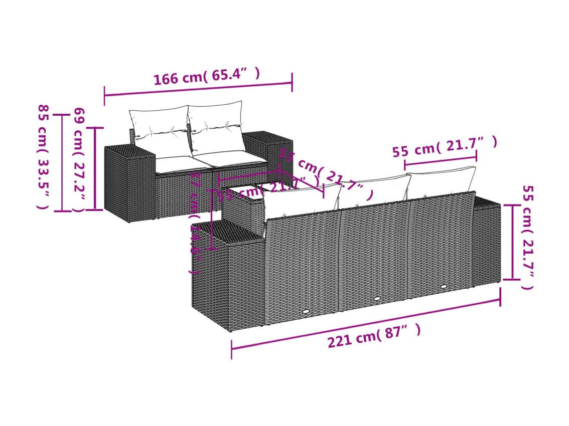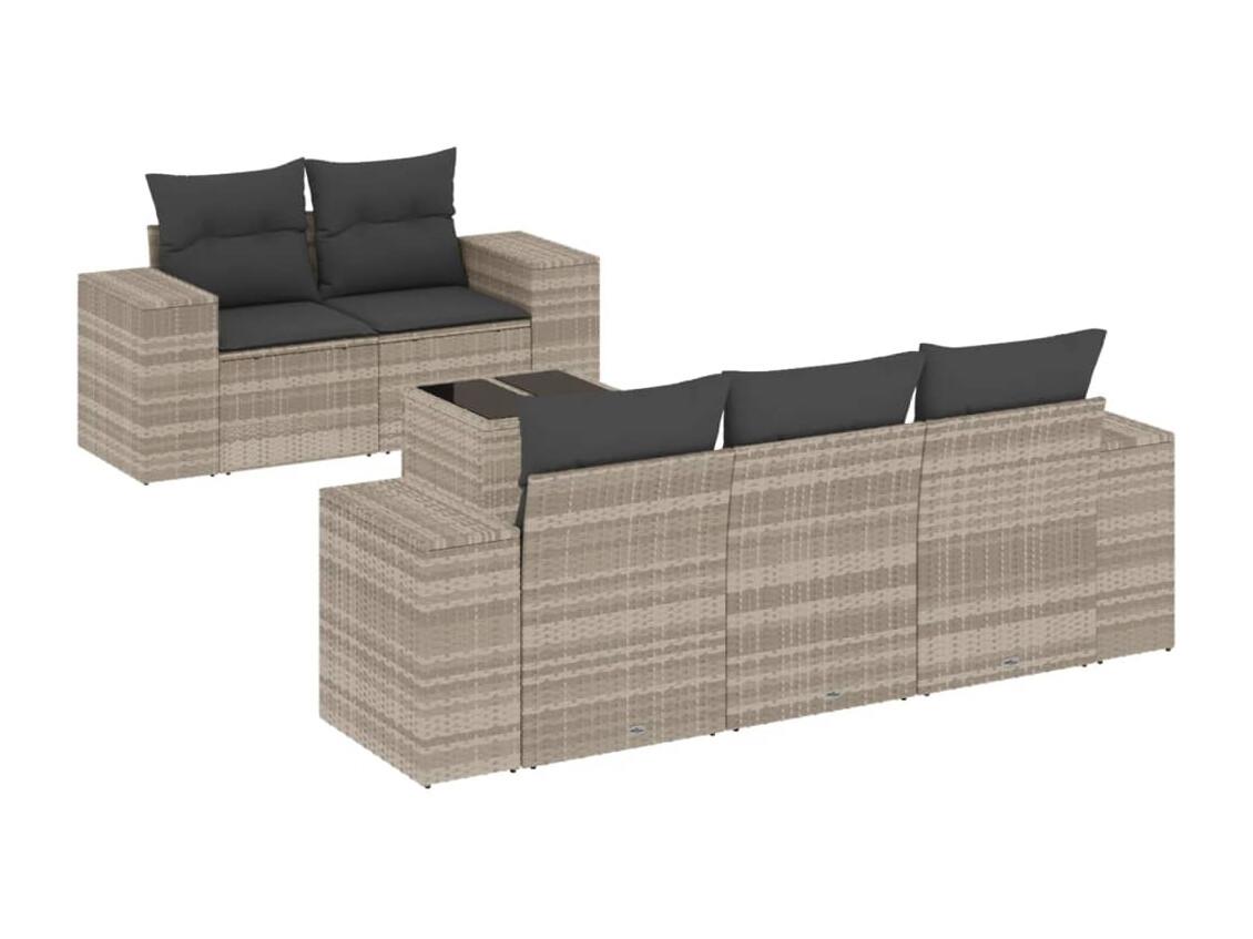 Set de sofás de jardín 6 piezas y cojines ratán sintético gris