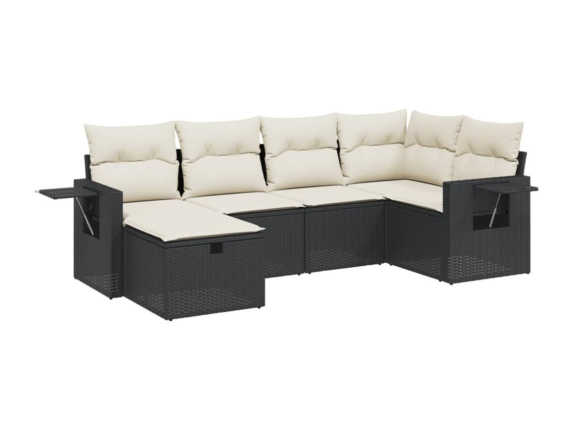 Set de sofás de jardín 6 piezas y cojines ratán sintético negro