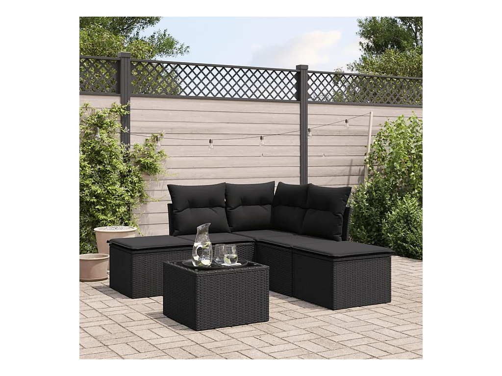 Set de sofás de jardín 6 piezas y cojines ratán sintético negro