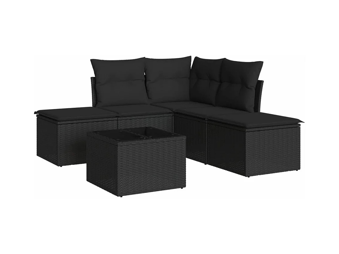 Set de muebles de jardín 5 pzas y cojines ratán sintético negro